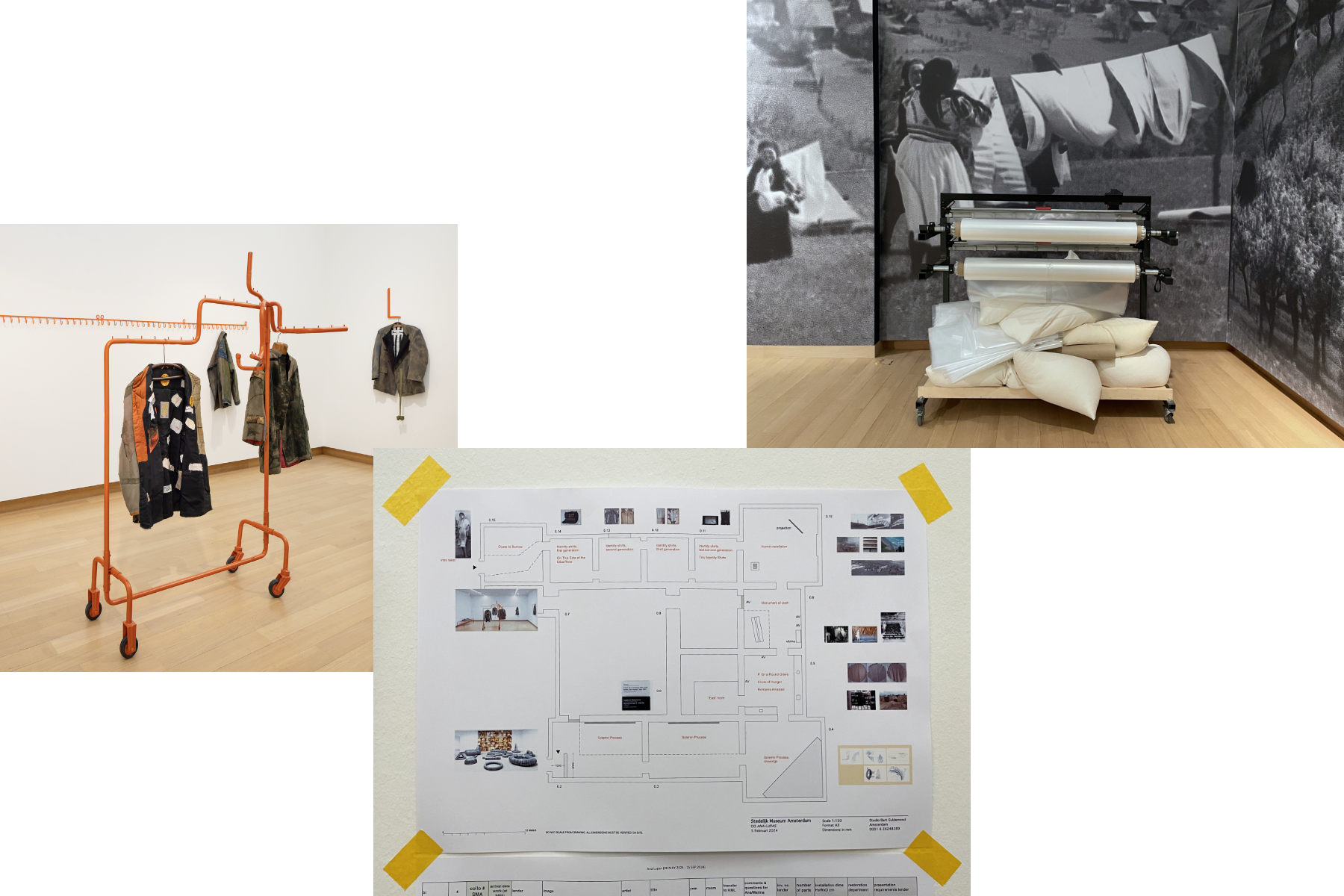 Het uitgangspunt van de tentoonstelling is Coats to Borrow (1989). Een aantal handgemaakte jassen, die hangen en liggen op oranje geschilderde metalen meubelstukken, zoals een garderoberek, bed en spiegel. Lupas maakte de jassen van oude kledingstukken en textiel en verspreidde ze binnen haar kunstenaarsgroep Atelier 35. De leden werden aangemoedigd hun naam op een label aan de binnenkant van de jas te naaien, die zo tastbare objecten werden van het netwerk en verzet, en de kracht van samenwerken benadrukken.