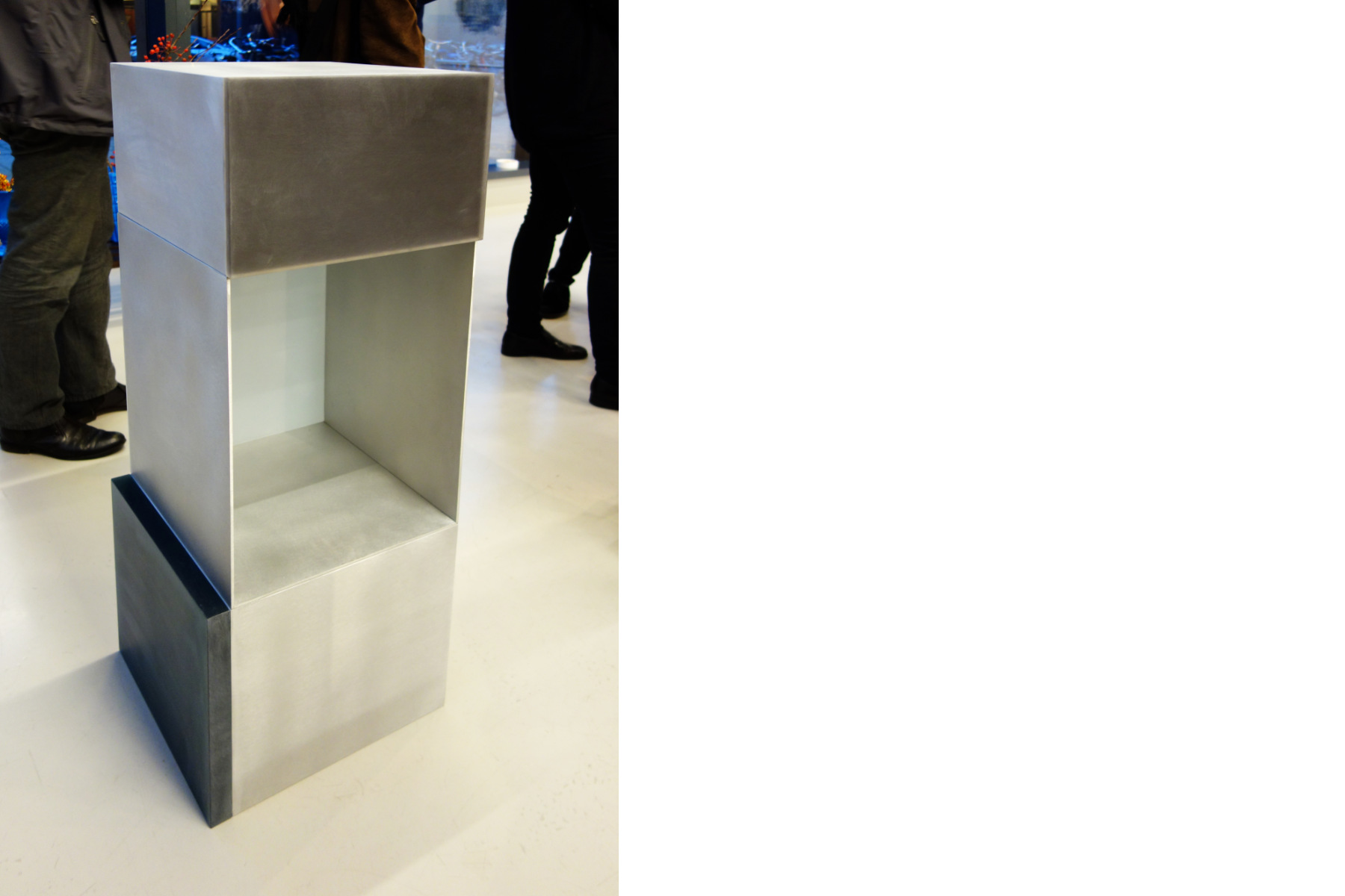 26 jaar na het ontwerp Kom BV (o.a. aangekocht door het Museum Boijmans Van Beuningen en MoMA, New York) maken Vincent de Rijk en Bart Guldemond Blok BV . Ook dit nieuwe product is gebaseerd op het verbinden van twee materialen in steeds wisselende uitvoeringen. In een maatsysteem van 4 blokken is Blok BV naar keus te stapelen en kunnen de blokken als kast of scheidingswand worden toegepast. Omdat we alles zelf produceren, kan de uitvoering afgestemd worden op de toepassing.